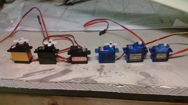 Skal du fly lenge mellom hver lading så anbefaler i jeg å velge analoge servoer fremfor digitale, men som nevnt tidligere er gode små lavvekt analoge servoer vanskelig å få tak i her i Norge, i vår siste byggerunde så var det noen som brukte Graupner DES428 rund baut - moen som fungerte men du må tenke igjennom plasseringen inne i kroppen flere ganger før du limer inn servobrettet