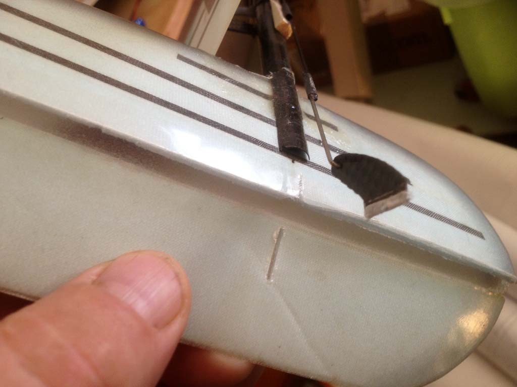 Sideroret på Binary III (og forsåvidt de andre rorene også) har en ganske stiv plast limt over foamen og fungerer også som hengsling. Etter transport (!) har plasten løsnet litt som bildet viser. Hvilket lim er best å bruke her, eller er det bare å bruke strykejernet?