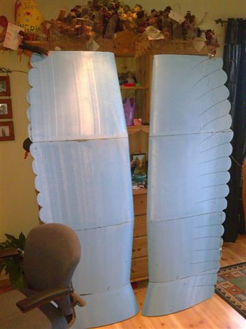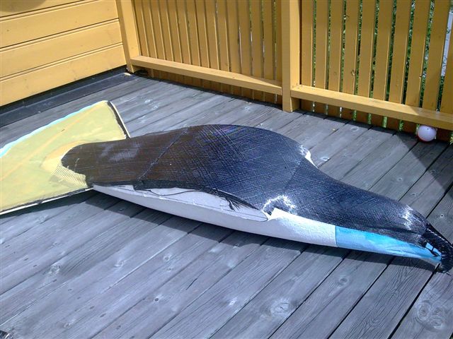Her blir korden (bredden av vingen) på det breieste 63 cm, så jeg skjærer vingedelene på positiv skjæremal, ikke i negativ som er en fordel på smalere korder.