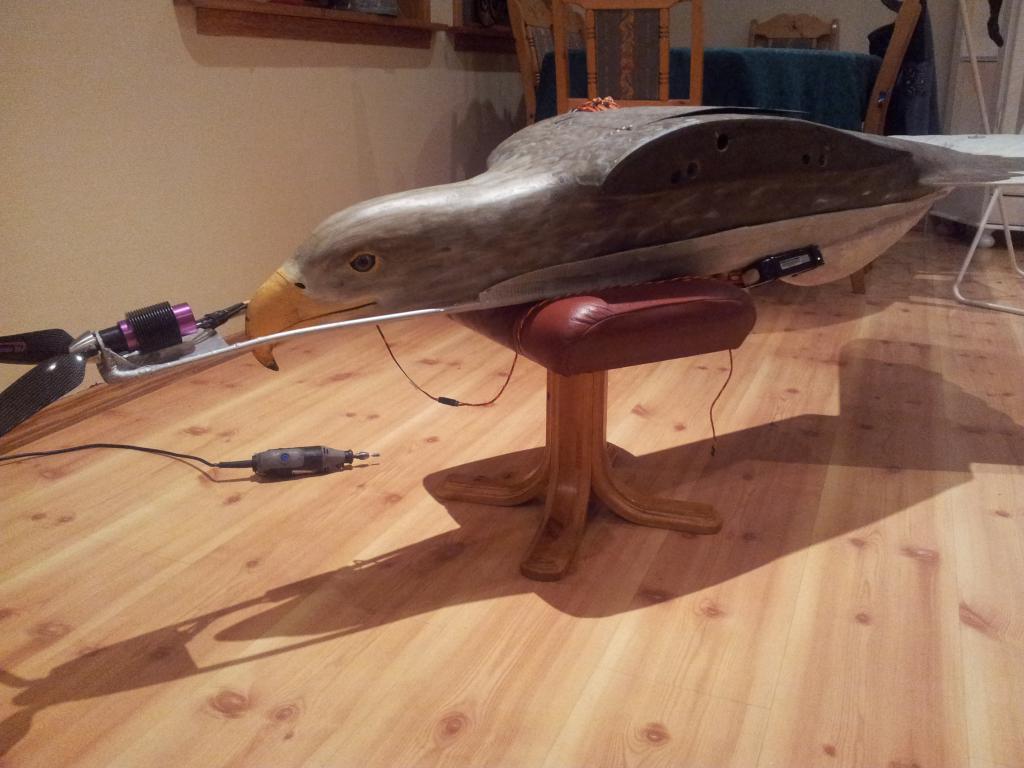 Men å fly det aleine som FPV har aldri vært en intensjon, kun en kameraplatform for å gjøre det best mulig. Og min tanke på det er som sagt. FPV er som Geir sier, det spiller jo ingen rolle hvordan selve flyet ser ut da. Men å kombinere det, være med ørna mi på en tur med andre ørner, der kamera er langt utpå vingen og slik at en får "perspektiv", det er det som er greia her, egentlig veldig lite annet. Vel 12 kilo og 4 mm rustfritt stål på høykant laangt bakover ifra nebb og bakover, det er ikke en isoporbling det her, og bør både behandles og vurderes som det. Iså måte er det et spett, for de som veit hva det er. Så det her blir nok ikke mitt FPV fly, men jeg vil ta en titt, JA!