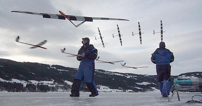 +7 grader og 4-5m/s vind når jeg ankom isen i dag. Brukte vinden for det den var verdt med en drøss starter før den døde og snudde 180 grader. Masse termikk og kunne til tider fly så lenge jeg ville.