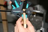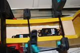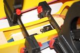 Etter tilpassingen av balsalista, så smurte vi det hele godt inn med Beli-Zell lim (Type grønn) og klemte det sammen med enhåndstvinger, litt maskeringstape for å hindre limsøl og hjelpe på pussejobben ble også brukt.