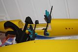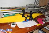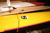 Som dere ser fra bildene ble servoene montert i brettet før det ble limt på plass. Dette for å sørge for at servoene kommer i riktig høyde i forhold til høyde og sideror på modellen og pushrods blir rettest mulig.