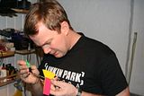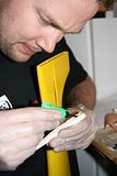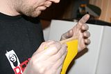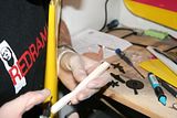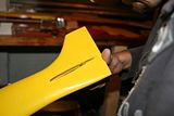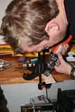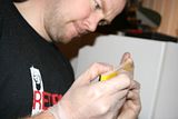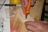 Det skal limes en balsa list bak i kroppen for å feste hengsler i og stive opp halen, denne måtte slipes til litt for at den skulle passe bra, her brukte vi ikke sirkelsaga, men sandpapir, selv om fristelsen var stor