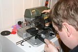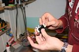Vi begynte dagen med å gjøre klart servobrettet, her skal det lages hull til to stykk Power HD servoer DS090M