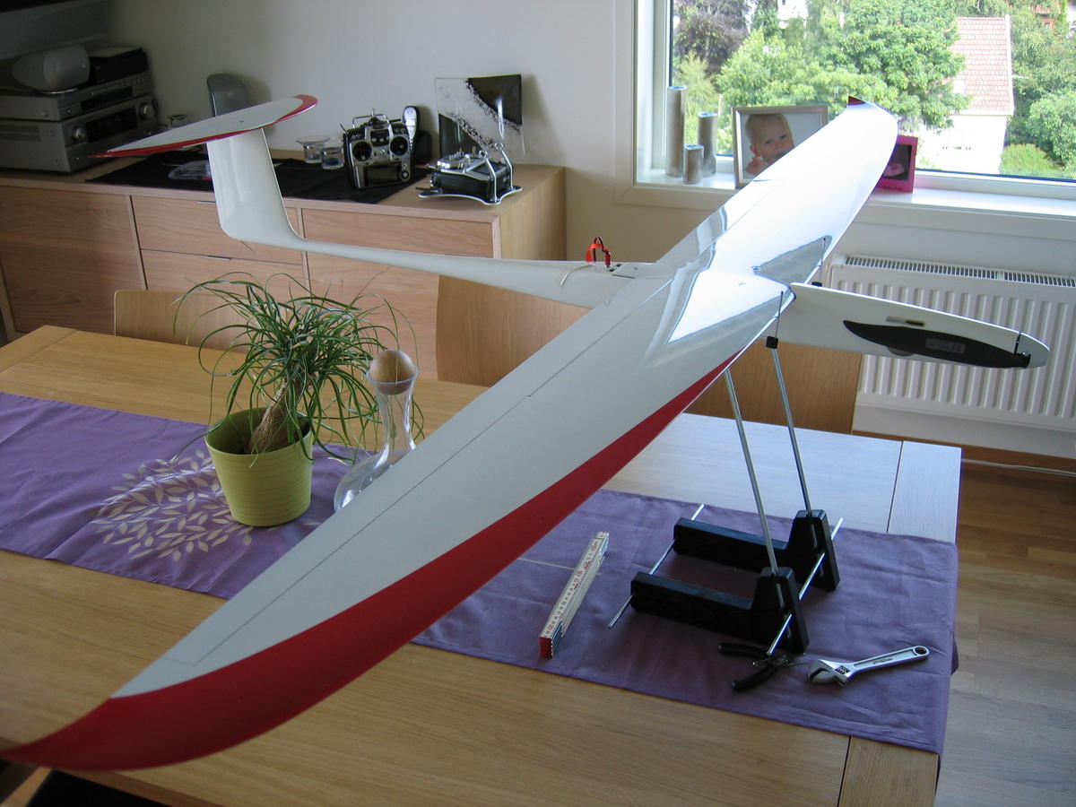 Om dette stemmer vet jeg ikke enda fordi motor og vinge ligger ved siden av meg i delere stadig vekk (det er mer moro med en 90cm Pylon racer )