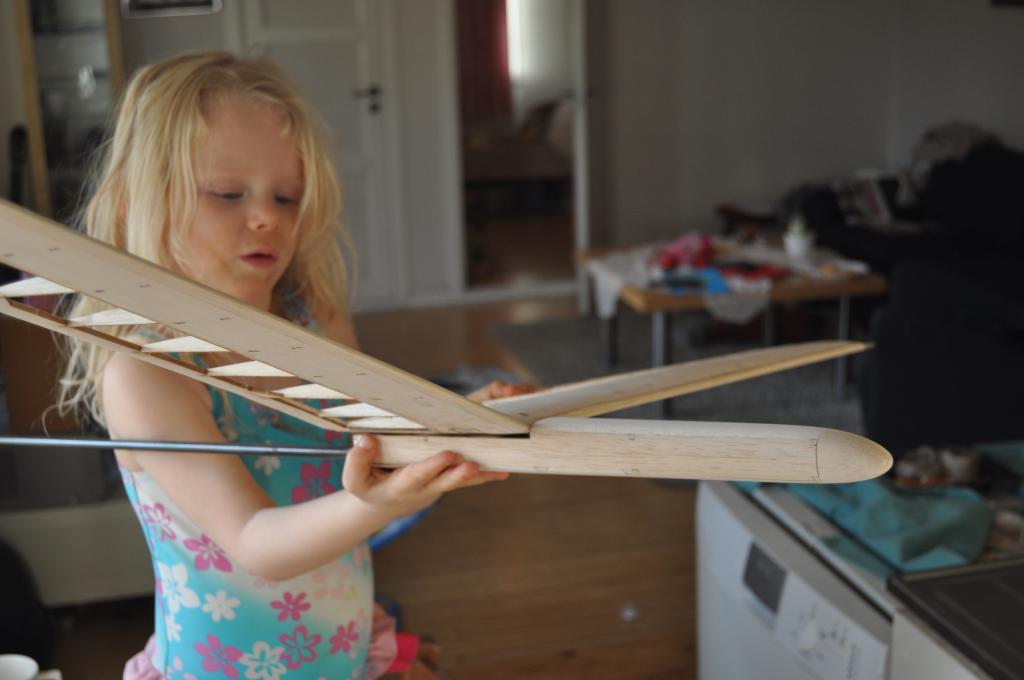 Driver å pusler med et lite seilfly på 1.2 meter. (QFII)
