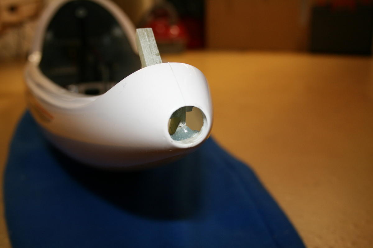 Har et problem med å få laget til en slepekobling i nesa på en DG 303. Dette er jo normalt ganske enkelt men i denne modellen så står det 2 stk armer som holder canopy helt der fremme. Hullet foran i nesen på seilflyet er allerede laget fra fabrikk så jeg vil prøve å få til noe der og ikke lage en slik "riskorn" kobling under flyet noen cm lenger bak. Noen som har et tips her som er utenom "vanlige" slepekroker? Bør tåle litt vekt også, ca 12 kg