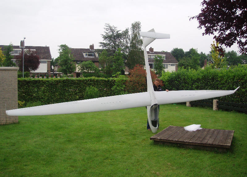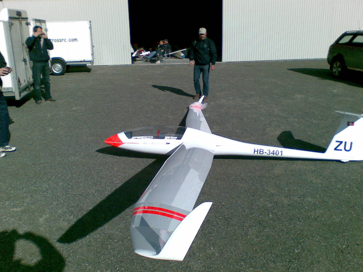 Begge flyene er gedigne saker der AWS 28 / 18`en er i 1:2 på ni meter (den hvite), og Duo Discusen er 8 meter, men har en kropp som er 3,4 m lang, og er i 1:2,5 skala.