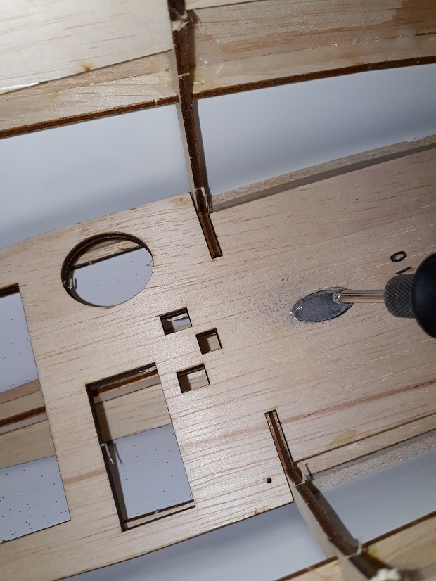 Laget hull i betrekninga med Loddebolt/svigjern, for gjennomføringer.